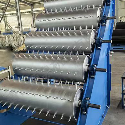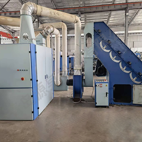 六滾筒開(kāi)毛機(jī)主要開(kāi)松原絨:山羊絨、綿羊毛、牦牛絨、駝絨等動(dòng)物纖維。本機(jī)開(kāi)松輥采用斜式排列,充分利用離心力,是去粗、去雜、去皮的最佳效果。結(jié)合風(fēng)機(jī)吸風(fēng)均勻落入和毛倉(cāng),是梳理前配備的必要產(chǎn)品。