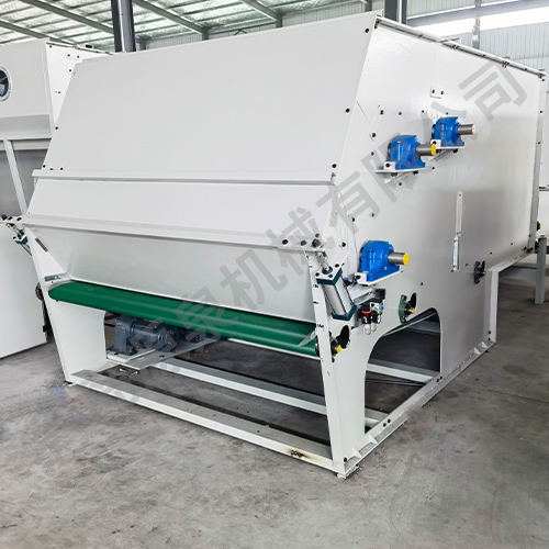 把各種捆包纖維、原料經(jīng)電子稱重后,喂入平簾輸送至主體混倉內(nèi),再由三道開松輥高速開松混合后,經(jīng)輸棉風(fēng)機以適量的風(fēng)量輸送纖維原料供后道工作使用。經(jīng)本機開松混合后的纖維、原料效果好,混合均勻,以備梳理使用。