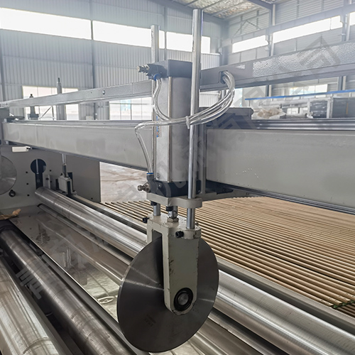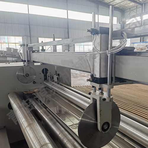 該機器采用飛刀切割或電熱絲方式橫切,并配有四把縱切切刀,其主要用于將噴膠棉、無膠棉、硬質(zhì)棉等進行切邊、收卷并裁剪成符合要求的尺寸規(guī)格。本機具有計數(shù)功能、跟蹤橫切功能。